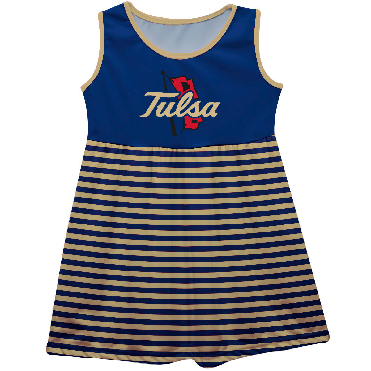 Tulsa Golden Hurricane Blue and Gold Sleeveless Tank Dress with Stripes on Skirt by Vive La Fete