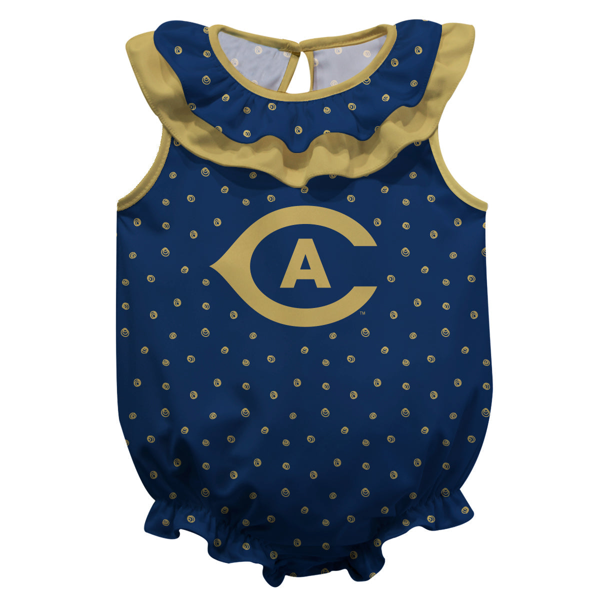 UC Davis Aggies Swirls Navy Sleeveless Ruffle One Piece Jumpsuit Logo Bodysuit by Vive La Fete