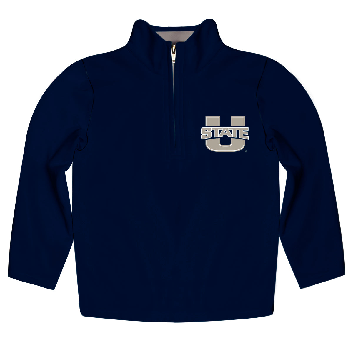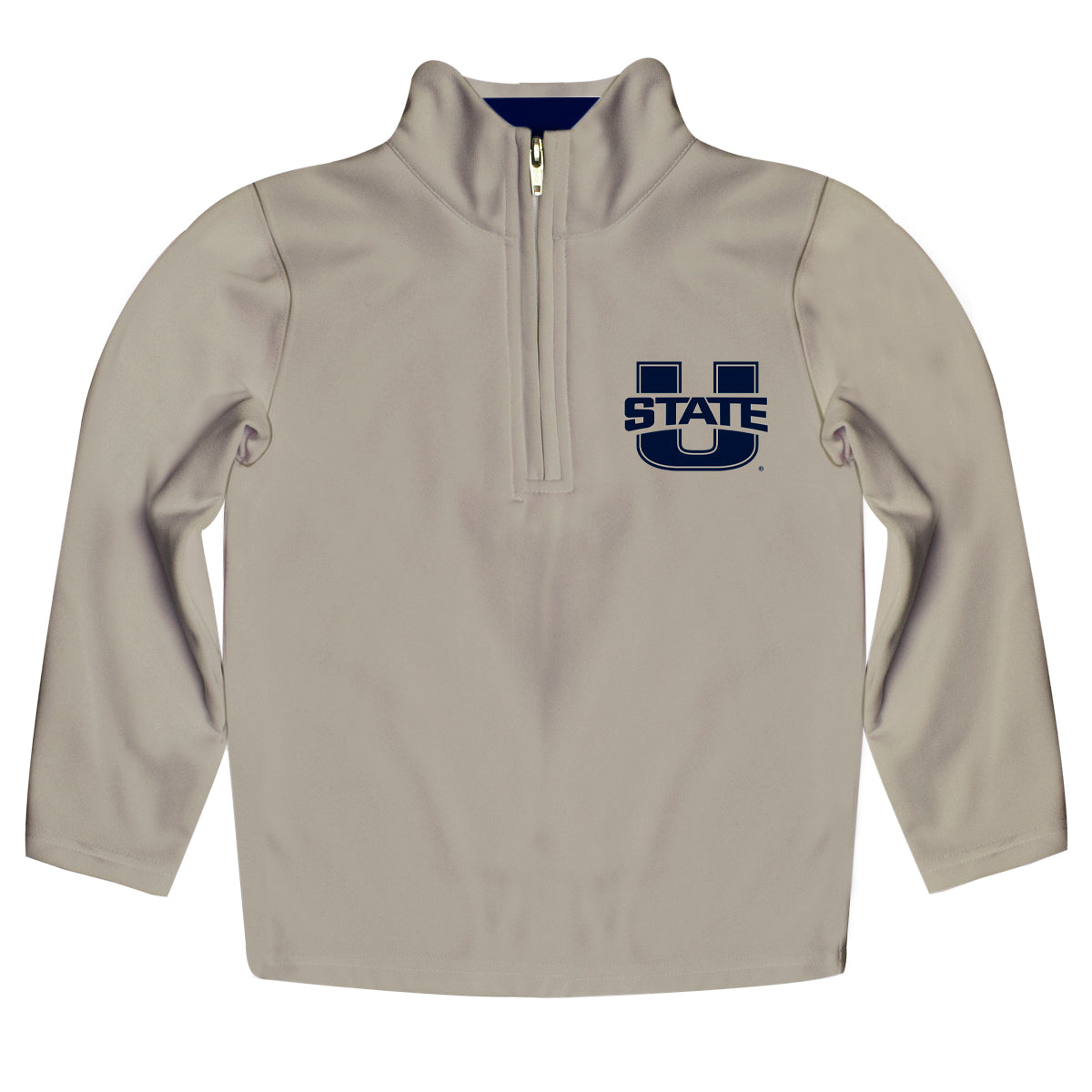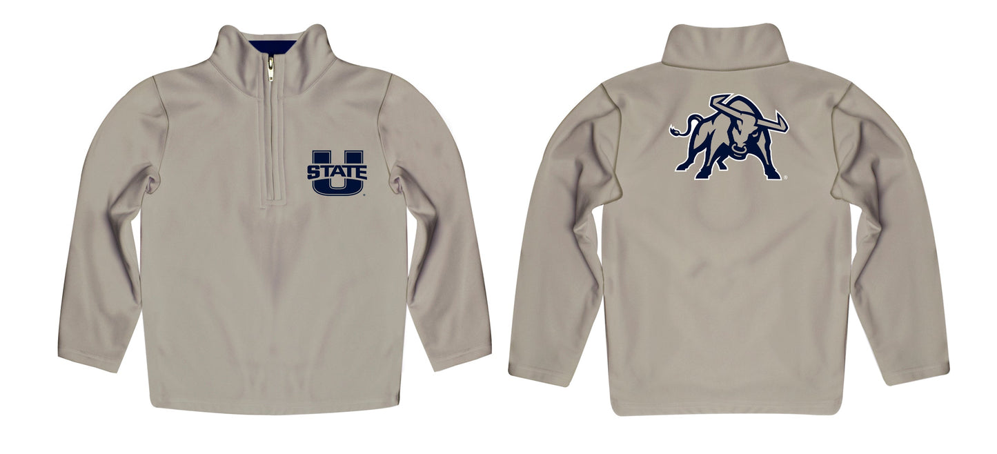 Utah State Aggies Game Day Solid Gray Quarter Zip Pullover Sweatshirt for Toddlers and Youth by Vive La Fete