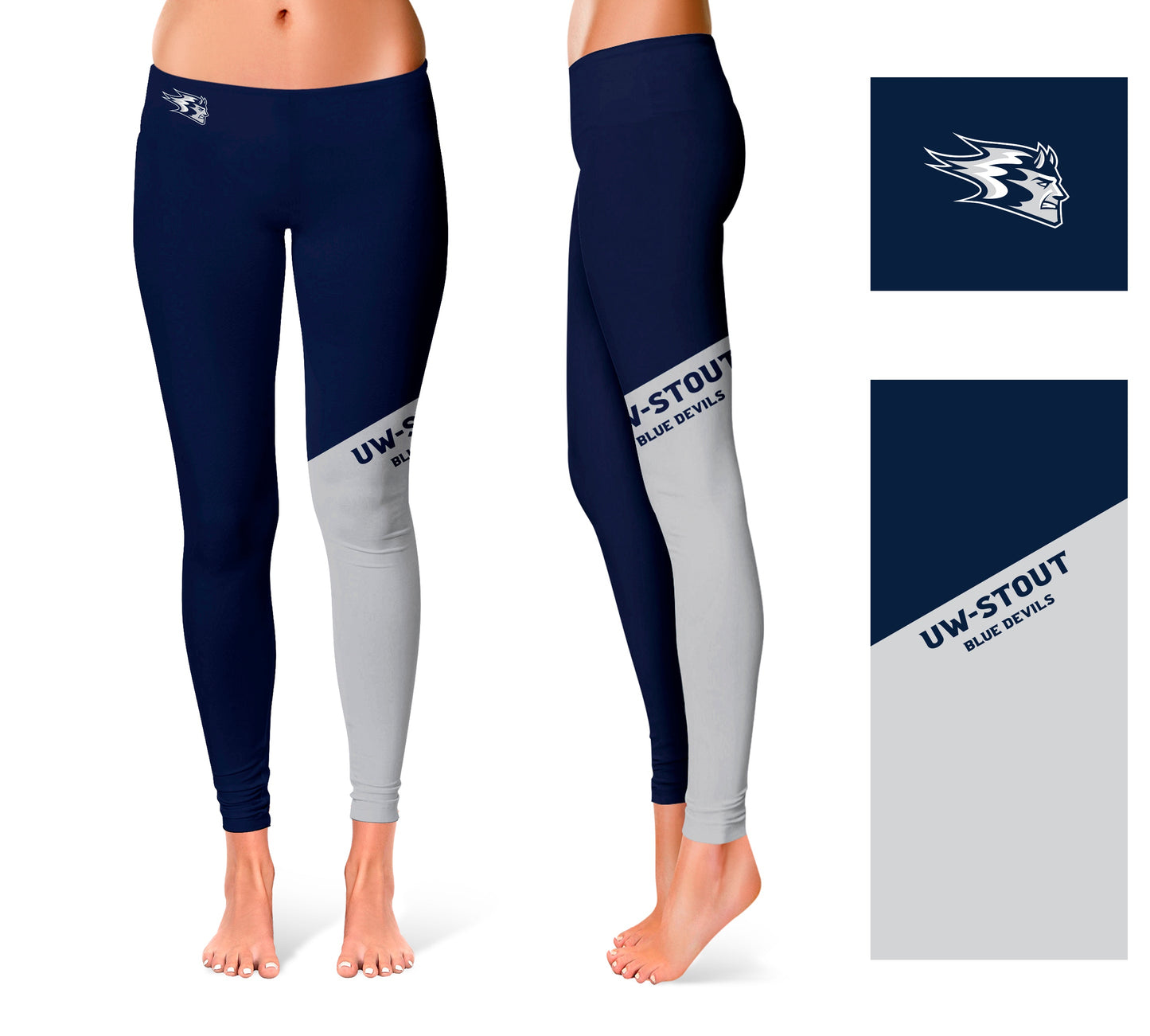 UW Wisconsing Stout Blue Devils Game Day Leg Color Block Navy Gray Yoga Leggings for Women by Vive La Fete