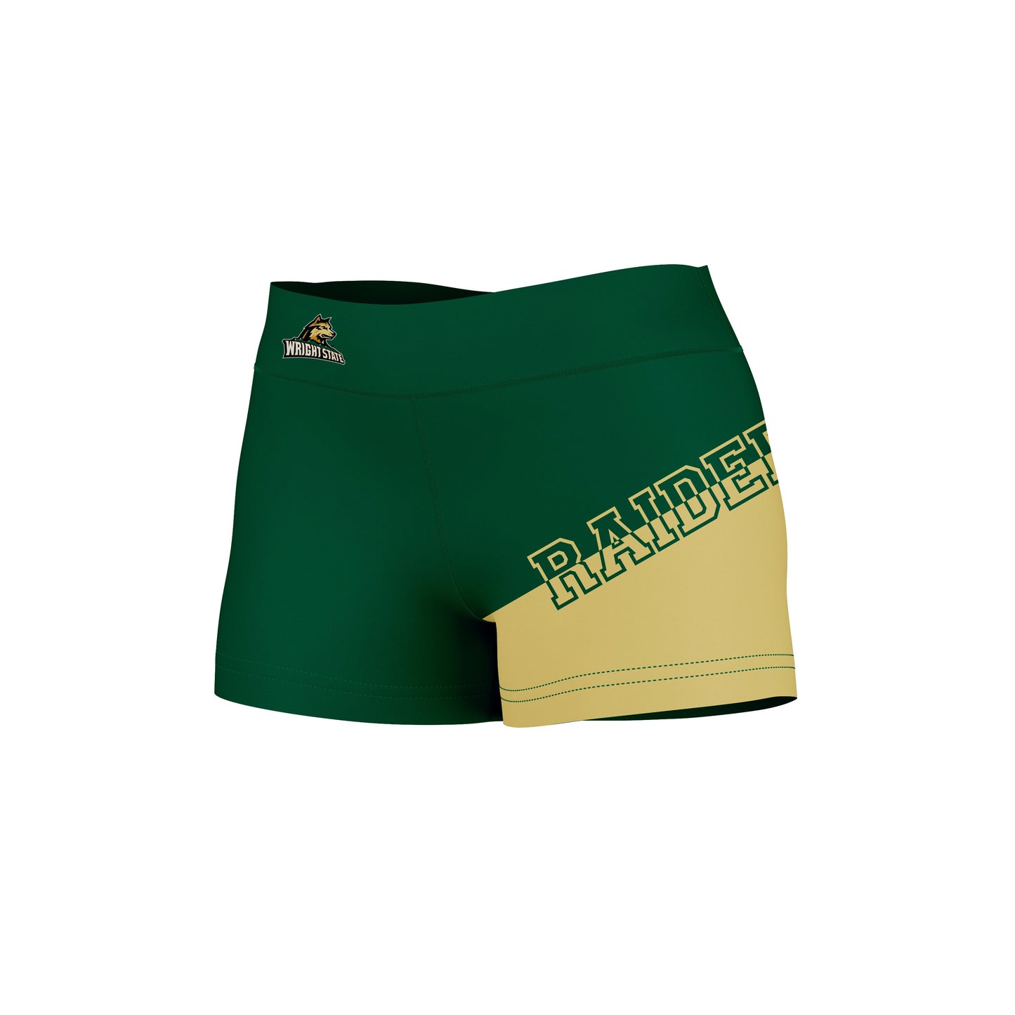 Wright State Raiders Game Day Collegiate Leg Color Block Green Gold Optimum Womens Yoga Shorts by Vive La Fete