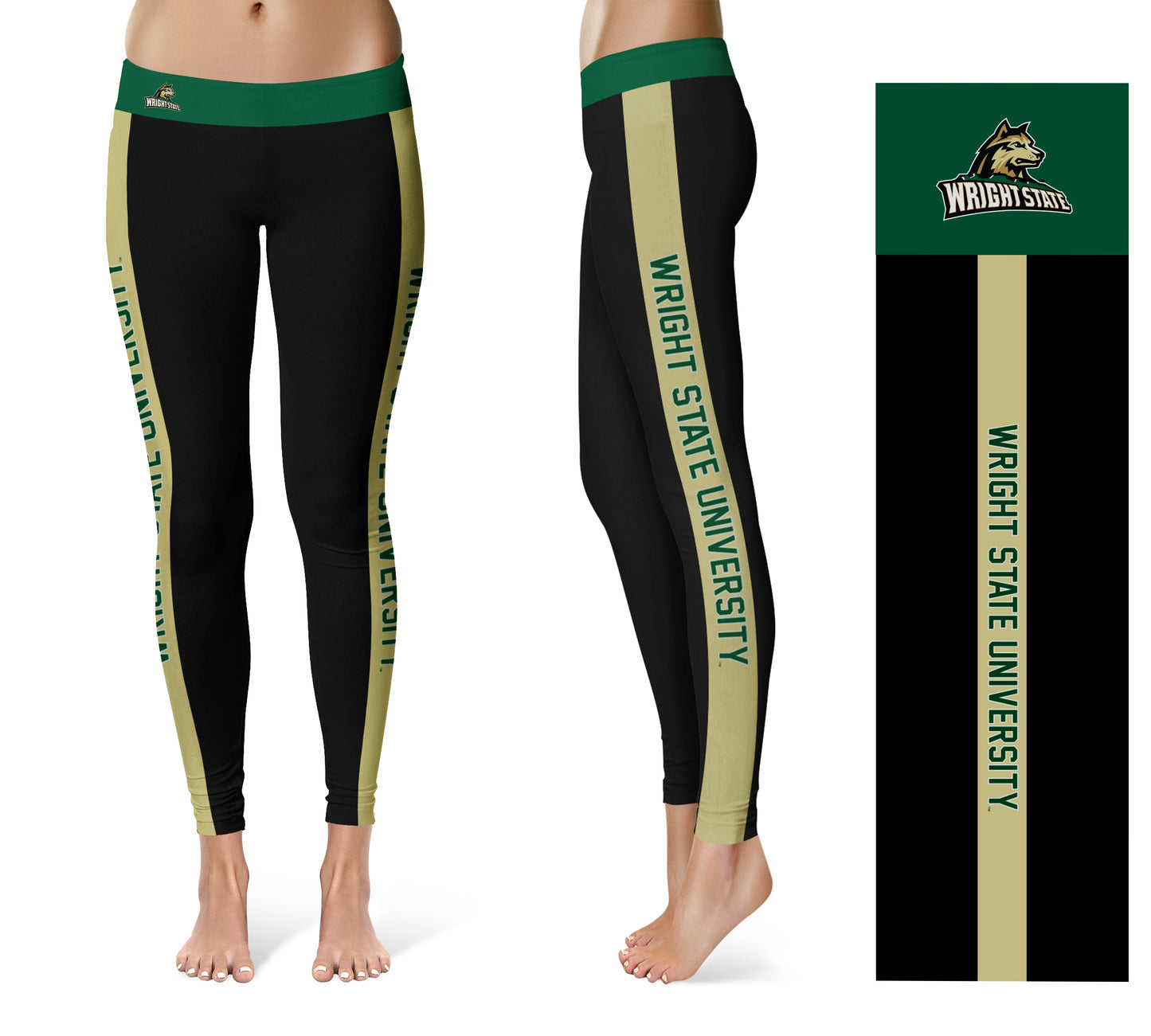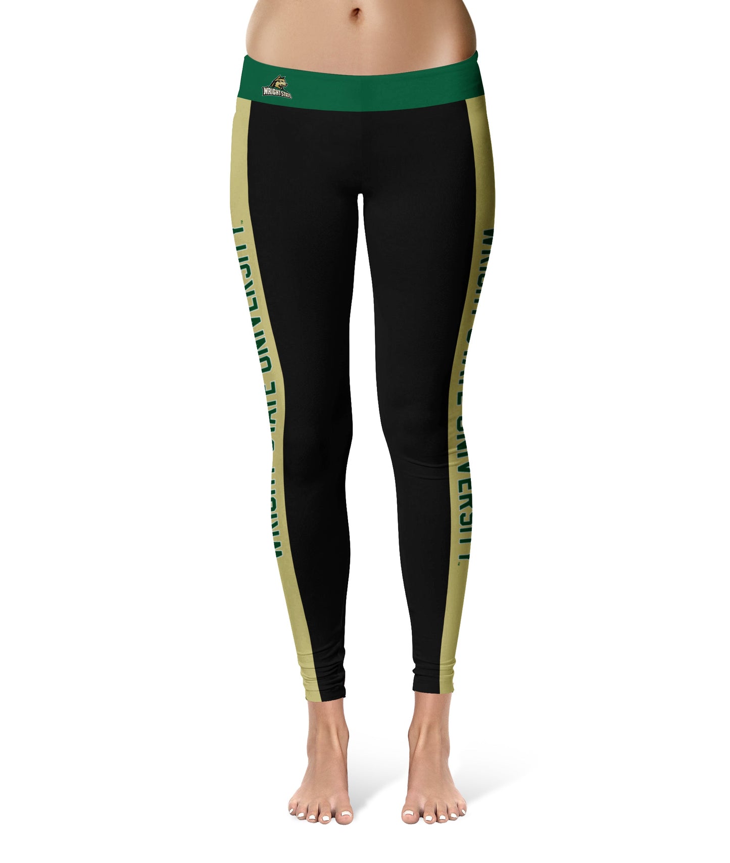 Wright State University Raiders Game Day Gold Stripes Black Yoga Leggings for Women by Vive La Fete