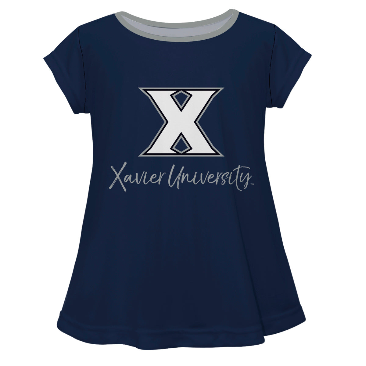 Xavier University Muskateers Girls Game Day Short Sleeve Navy Laurie Top by Vive La Fete