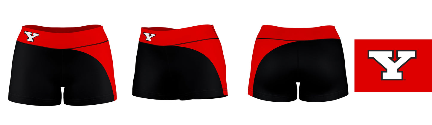 Youngstown State Penguins Collegiate Waist Color Block Black Red Optimum Womens Yoga Shorts by Vive La Fete